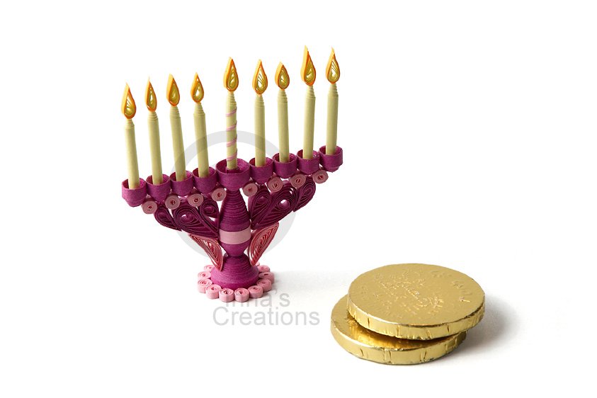 Miniature Hanukkah Menorah, quilling Quilling card with Hanukkah Menorah